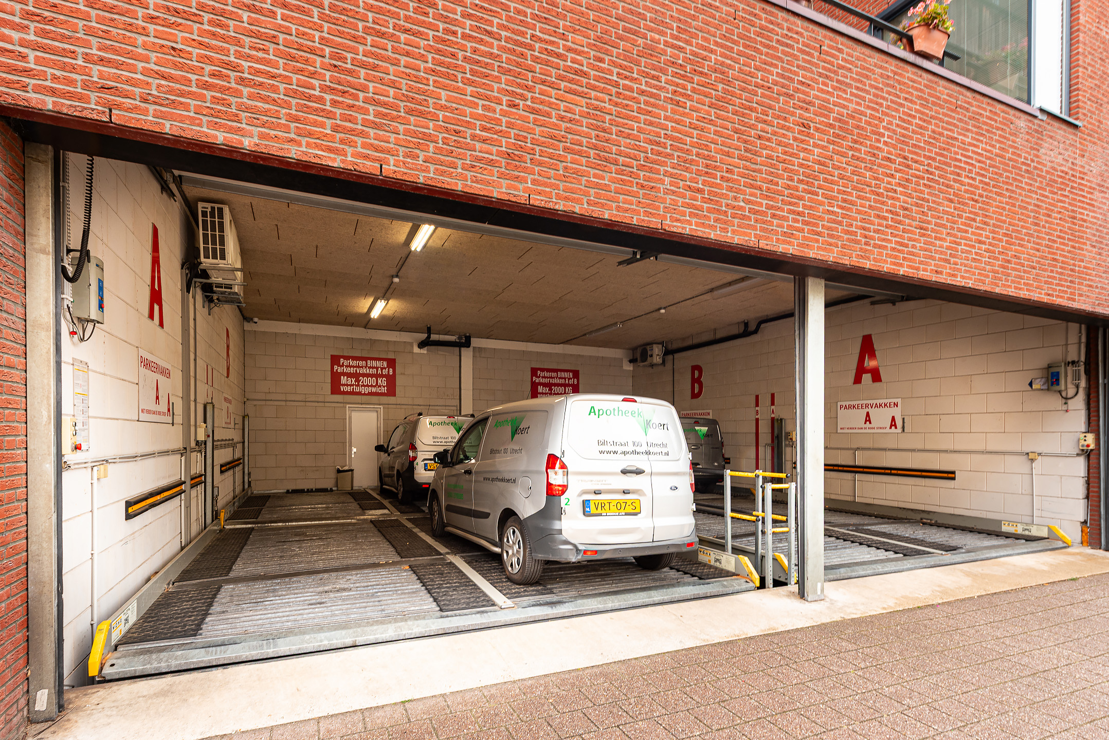 * de parkeerplaats heeft een gewicht van maximaal 2000 kg.