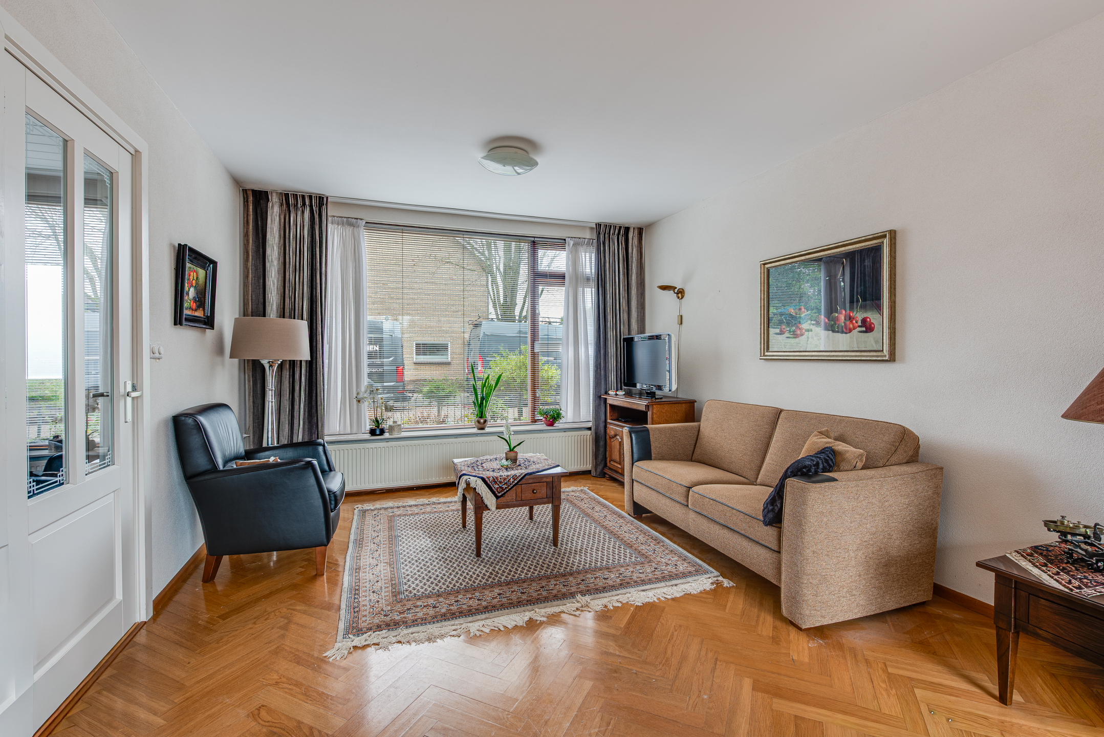 • de woonkamer is voorzien van een fraaie houten visgraatvloer;