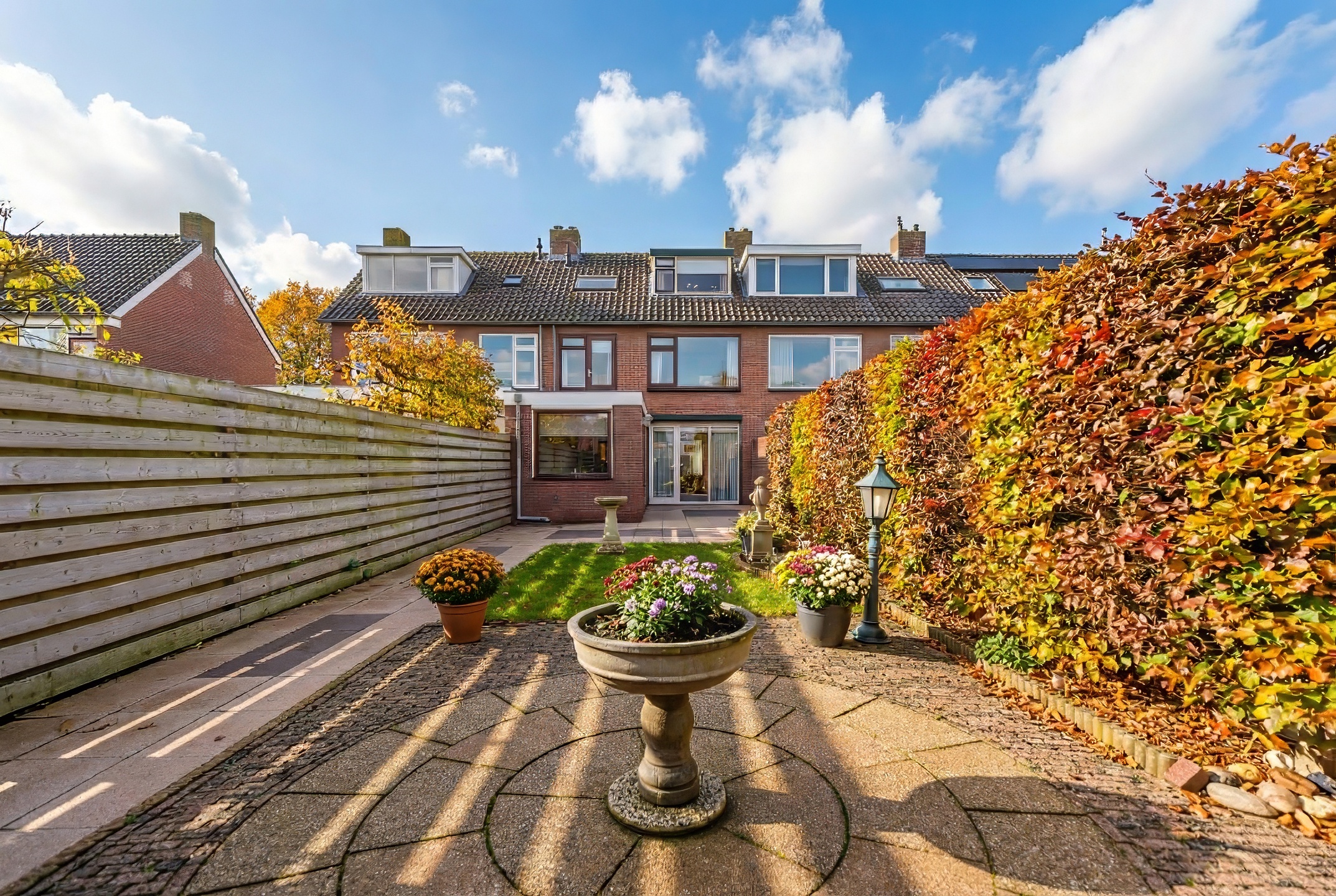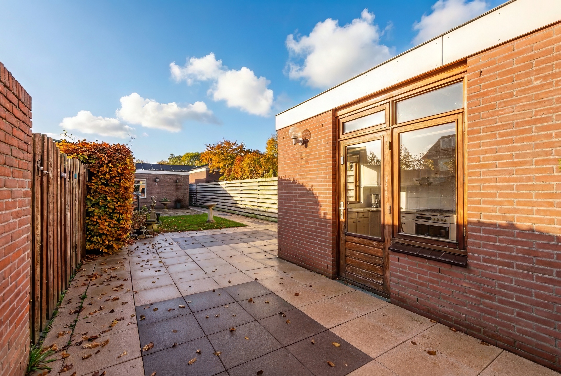 De woning beschikt over zowel een voor- als achtertuin, die beide verzorgd zijn aangelegd. De achtertuin is heerlijk diep en biedt volop privacy. Met een combinatie van bestrating en een klein, groen gazon is het een comfortabele en onderhoudsvriendelijke buitenruimte. Dankzij de ligging op het oosten geniet je ’s ochtends van de eerste zonnestralen en blijft het in de middag zeer aangenaam. De achtertuin is ook via het achterom bereikbaar.