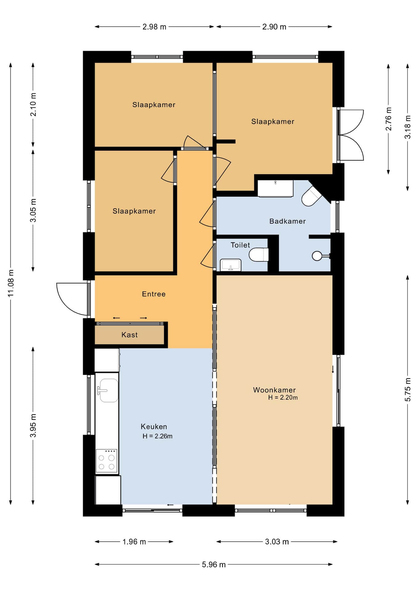 Begane grond: via de entree, voorzien van de meterkast, krijg je toegang tot de open keuken, de badkamer, een separaat toilet en drie (slaap)kamers. De moderne keuken is compleet uitgerust en beschikt over een inductiekookplaat, vaatwasser, combimagnetron, oven, afzuigkap en een koel-vriescombinatie. Dankzij de open opstelling staat de keuken in directe verbinding met de woonkamer, wat zorgt voor een ruimtelijk en gezellig geheel. De woonkamer kenmerkt zich door de grote raampartijen, die zorgen voor een aangename lichtinval en een prettige sfeer. De drie (slaap)kamers zijn comfortabel ingericht. De royale master bedroom beschikt over een vaste inbouwkast en openslaande deuren naar de tuin, waardoor binnen en buiten op mooie wijze met elkaar worden verbonden. De badkamer is netjes afgewerkt en voorzien van een wastafelmeubel, een ruime inloopdouche, toilet en een designradiator.